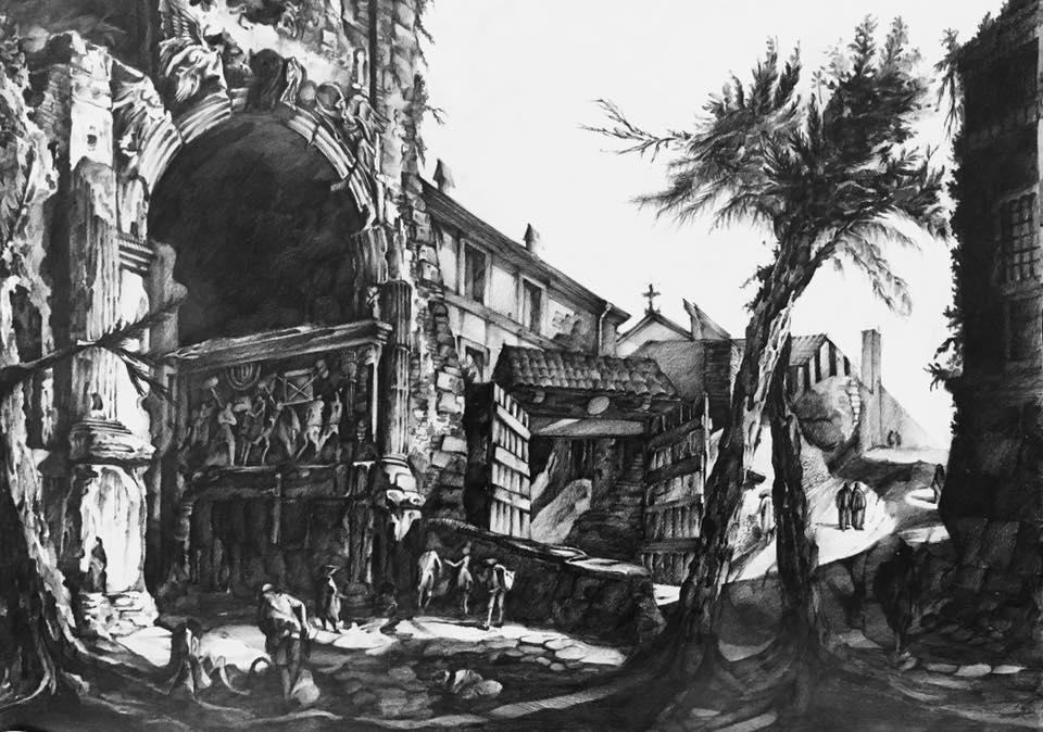 W połowie XVIII wieku pod Neapolem odkryto Pompeje, gdzie rozpoczęto szeroko zakrojone prace wykopaliskowe. Wydarzenie to rozpaliło do czerwoności umysły artystów i architektów drugiej połowy XVIII w – spowodowało modę na antyk. Można powiedzieć, że to odkrycie było fundamentem dla mającej nadejść epoki klasycyzmu. Badacze sztuki i architektury, rytownicy, malarze przystąpili do eksplorowania tego i innych miejsc – analizując obiekty i rysując (lub rytując) w ramach grafik. Giovanni Battista Piranesi to najbardziej jaskrawy przykład. Urodził się w 1720 roku w Mogliano Veneto i zmarł 1778 w Wenecji. Giovanni zdobył wykształcenie architektoniczne dalej życie zawodowe podporządkował analizom starożytnych bydowli oraz uwiecznieniu ich proporcji, zasad budowy oraz stanu zachowania. Z jego dzieł możemy dowiedzieć się w jakim stanie zachowania był Łuk Tytusa pod koniec XVIII oraz fakt, że stanowił jedną z bram wjazdowych do Rzymu. Artysta na swoich grafikach uwiecznił także Colosseum, obiekty na Forum Romanum oraz wiele mostów *(np. Ponte Selario), z których najciekawsze są warowne – uzbrojone w blanki i wieże. Ciekawym elementem stylu Piranesiego jest pomniejszanie postaci względem budynków, mające na celu wprowadzenie monumentalnego wrażenia.