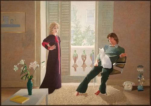 David Hockney urodzony w 1937 w Bradford (Północna Anglia), słusznie uznawany jest za jednego z najwybitniejszych współczesnych artystów. Wszechstronnie uzdolniony i nieustannie eksperymentujący, zajmuje się grafiką, rysunkiem, scenografią, fotografią. W ostatnich latach tworzy na tablecie. Jednak największe mistrzostwo osiągnął w malarstwie sztalugowym. Jest autorem portretów, pejzaży, dotyka również wątków autobiograficznych. Wyjątkowość jego twórczej postawy polega między innymi na umiejętności nawiązania szczególnego dialogu ze starymi mistrzami. Dowodem tego jest powstały w 1971 roku podwójny portret zatytułowany Mr and Mrs Clark and Percy. W sposób ewidentny odnosi się tu Hockney do namalowanego przez Jana van Eycka 537 lat wcześniej Małżeństwa Arnolfinich. Dzieło niderlandzkiego mistrza przepełnione jest symboliką: pies – symbol wierności, paląca się świeca – symbol obecności Chrystusa, lustro, miotła i owoce symbolizują czystość. Bohaterami obrazu Hockneya jest Ossie Clark, projektant mody i jego żona Celia Bitwell zajmująca się projektowaniem tkanin. Osadzeni są w przestrzeni swojego mieszkania znajdującego się w prestiżowej dzielnicy Londynu Noting Hill. Autor wprowadza kilka elementów mających również znaczenie symboliczne. Najważniejszym z nich jest biały kot o imieniu Percy, symbolizujący niezależność i niewierność. Jest także jeszcze jeden ciekawy wątek wspólny dla tych dwóch wybitnych obrazów. Wiadomo, że van Eyck jako jeden z pierwszych zaczął stosować technikę olejną, przyczyniając się jednocześnie do jej upowszechnienia. Hockney swoje płótno wykonał techniką akrylową, która w ówczesnym czasie dopiero się rodziła. Oba obrazy mówią o wartościach charakteryzujących dla czasu, w którym powstały. Ważniejszy jest jest jednak fascynujący dialog między tymi dwoma wybitnymi artystami, ponieważ uświadamia, że malarstwo rodzi się zawsze z malarstwa.