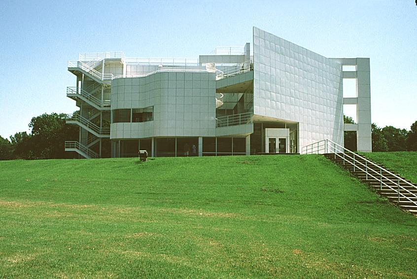 Najbardziej jednak charakterystycznym i najczęściej pokazywanym dziełem Meiera jest chyba Historic New Harmony Atheneum w Stanie Indiana USA. Obiekt stanowi biuro turystyczne, informację oraz opowieść o terytorium Nowej Harmonii w Indianie. Budynek „pospinany” jest z kombinacji materii białych kwadratowych ścian, szklanych tafli, białej klatki chodowej (jak u Corbusiera) i wystających „bombli”. Na przełomie lat 80. i 90., gdy powstawał, wydawał się być raczej scenerią dla filmu SCI-FI niż budynkiem z epoki. Panował wtedy okres postmodernizmu, którego Meier nie „kupił”. Z drugiej strony nie stanowił dla postmodernizmu antytezy. Wydaje się, że architekt obszedł ten czas szerokim łukiem w towarzystwie m.in. Zahy Hadid i Sir Normana Fostera, tworząc własny czytelny i orginalny język architektoniczny.
